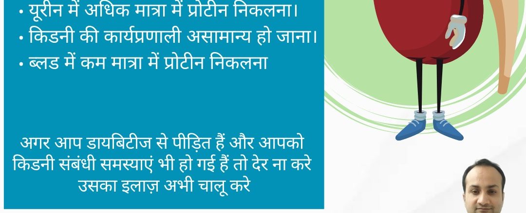 डायबिटीज के कारण किडनी तीन स्तर पर प्रभावित होती है। यूरीन में अधिक मात्रा में प्रोटीन निकलना। • किडनी की कार्यप्रणाली असामान्य हो जाना। ब्लड में कम मात्रा में प्रोटीन निकलना अगर आप डायबिटीज से पीड़ित हैं और आपको किडनी संबंधी समस्याएं भी हो गई हैं तो देर ना करे उसका इलाज़ अभी चालू करे
